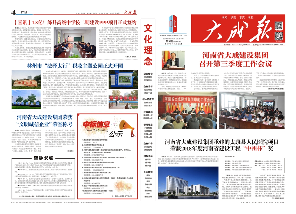 "中國建筑業最具成長性百強企業"、"全國優秀施工企業"、"河南省建筑業綜合實力前20強"、全國建筑業精品網站